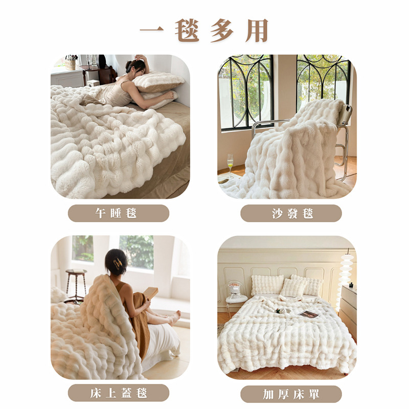 義大利托斯卡納立體兔絨高效升溫雙面加厚暖暖毯(150x200cm)
